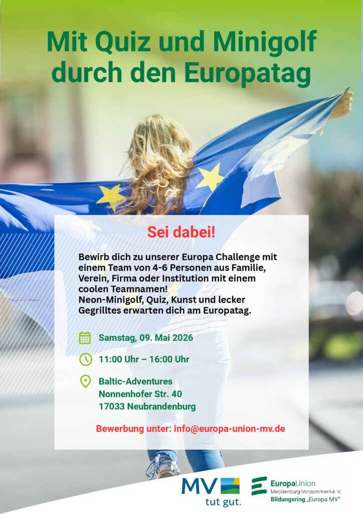 Neon-Minigolf, Quiz, Kunst und lecker Gegrilltes erwarten dich am Europatag.